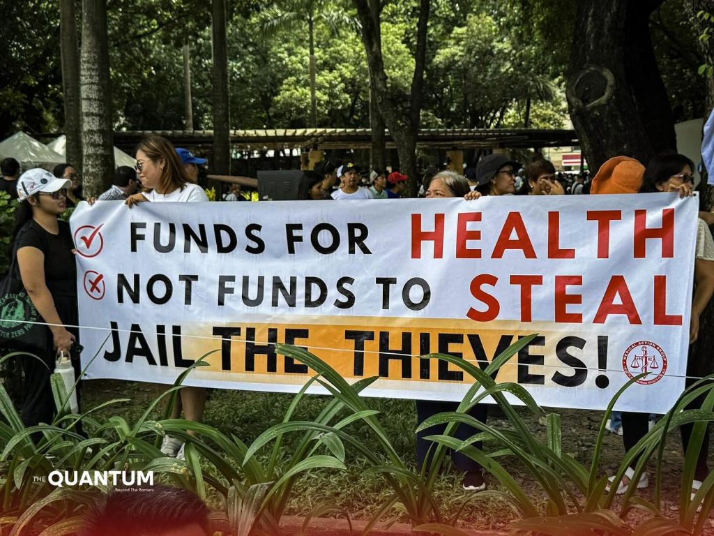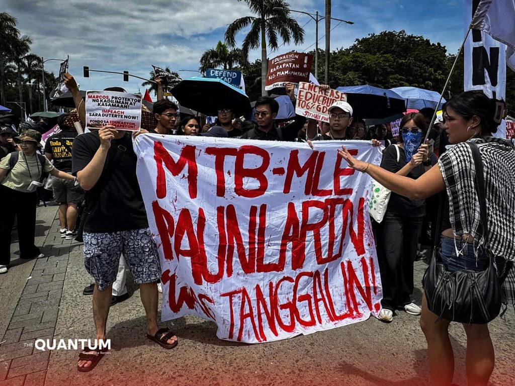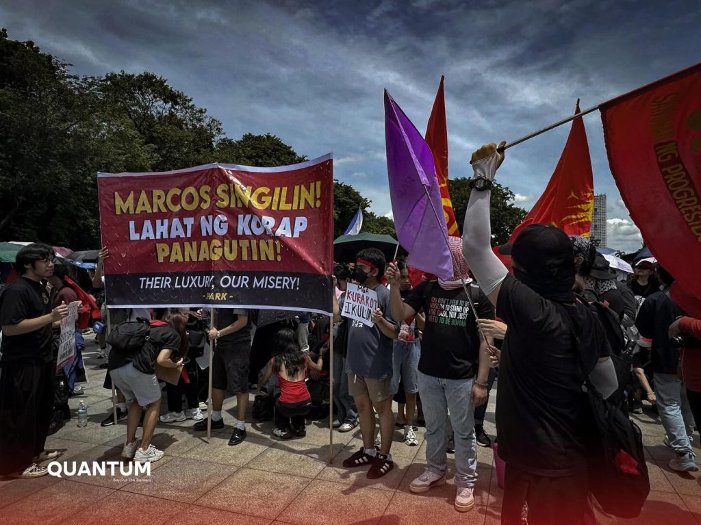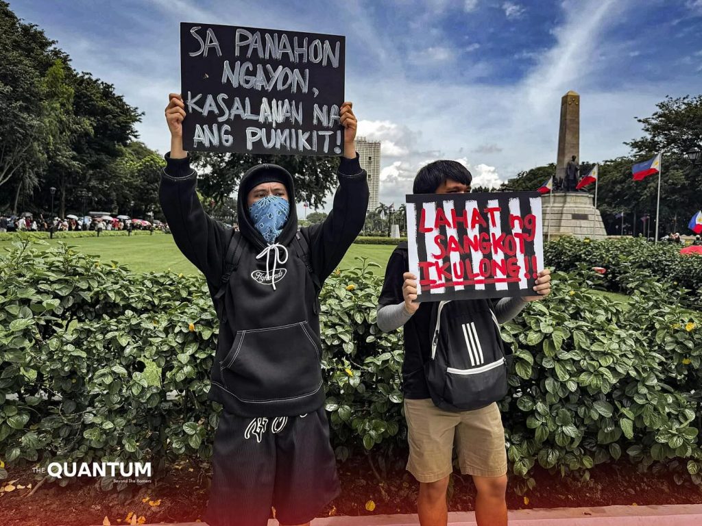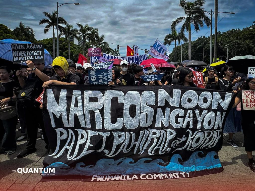 To commemorate the 53rd Anniversary of the declaration of Martial law, Protesters march in Luneta Park, urging government accountability for flood control corruption and continuous misuse of public funds.
