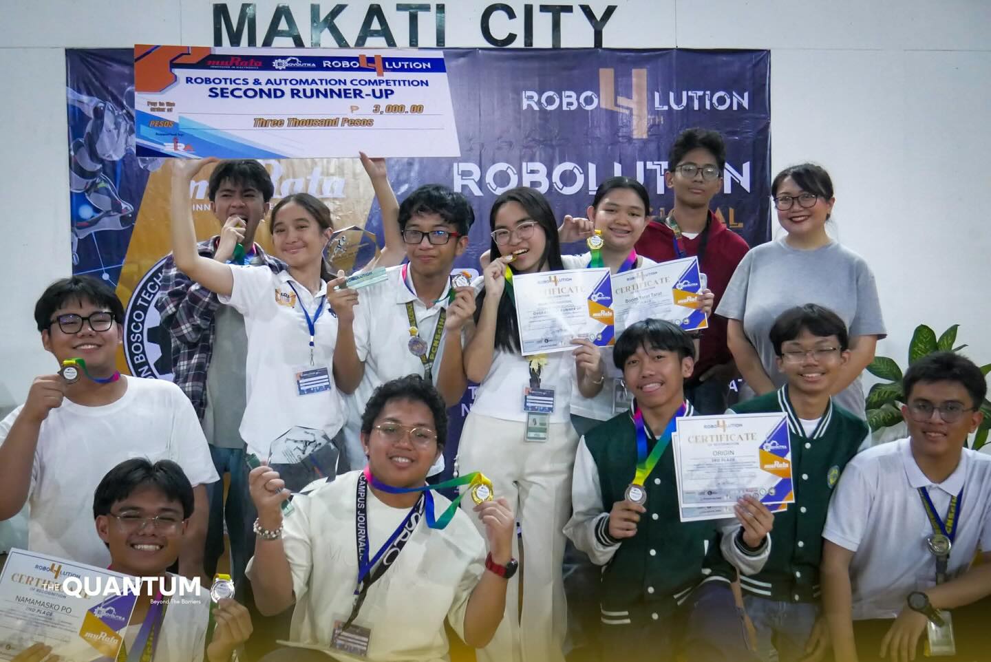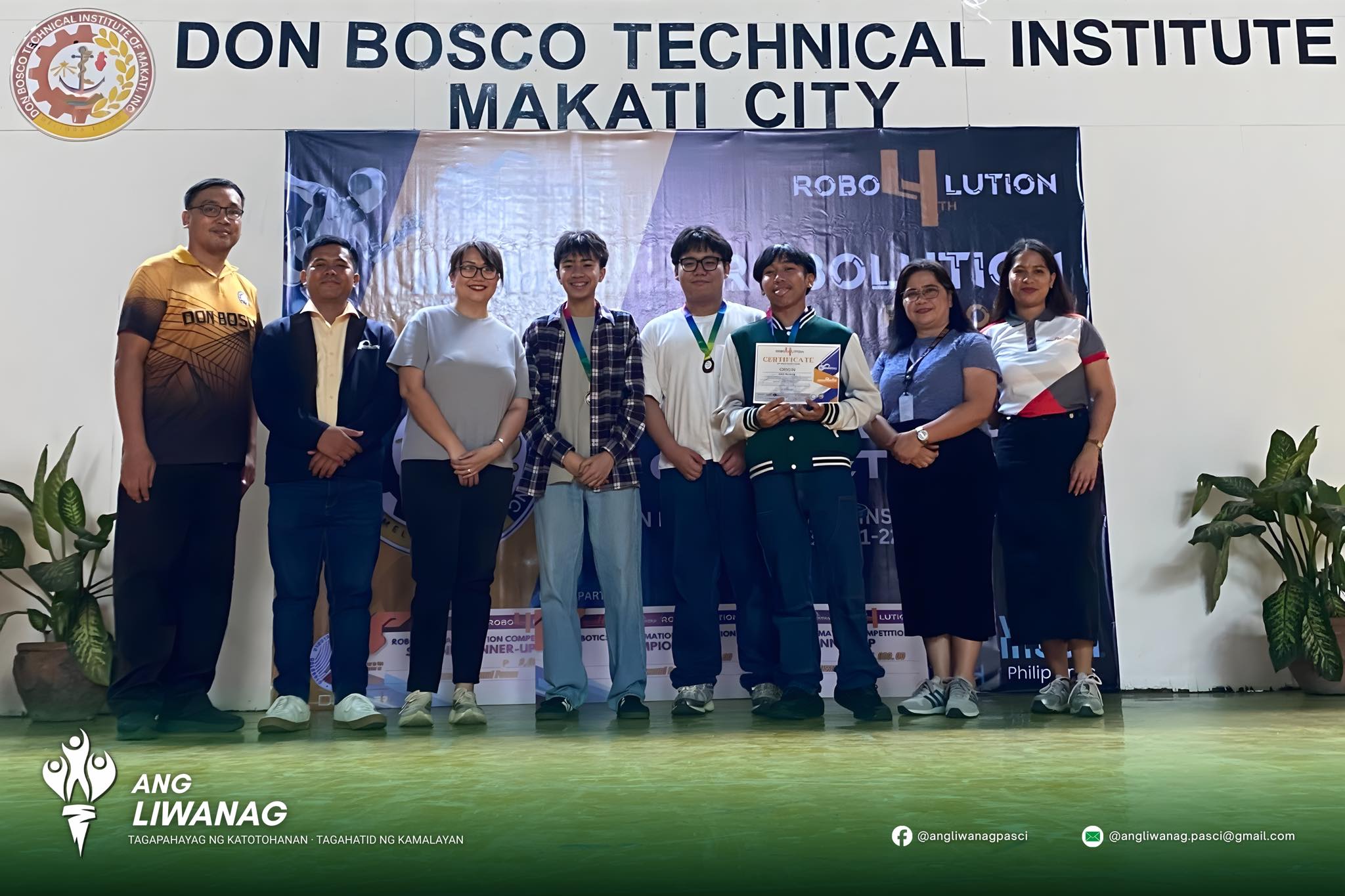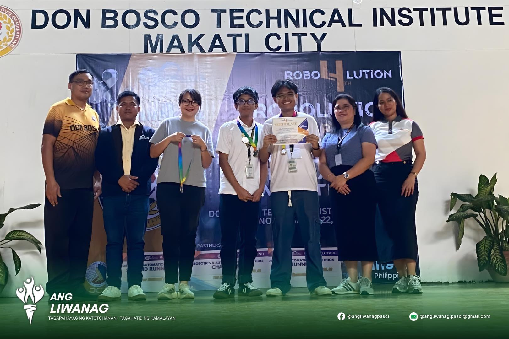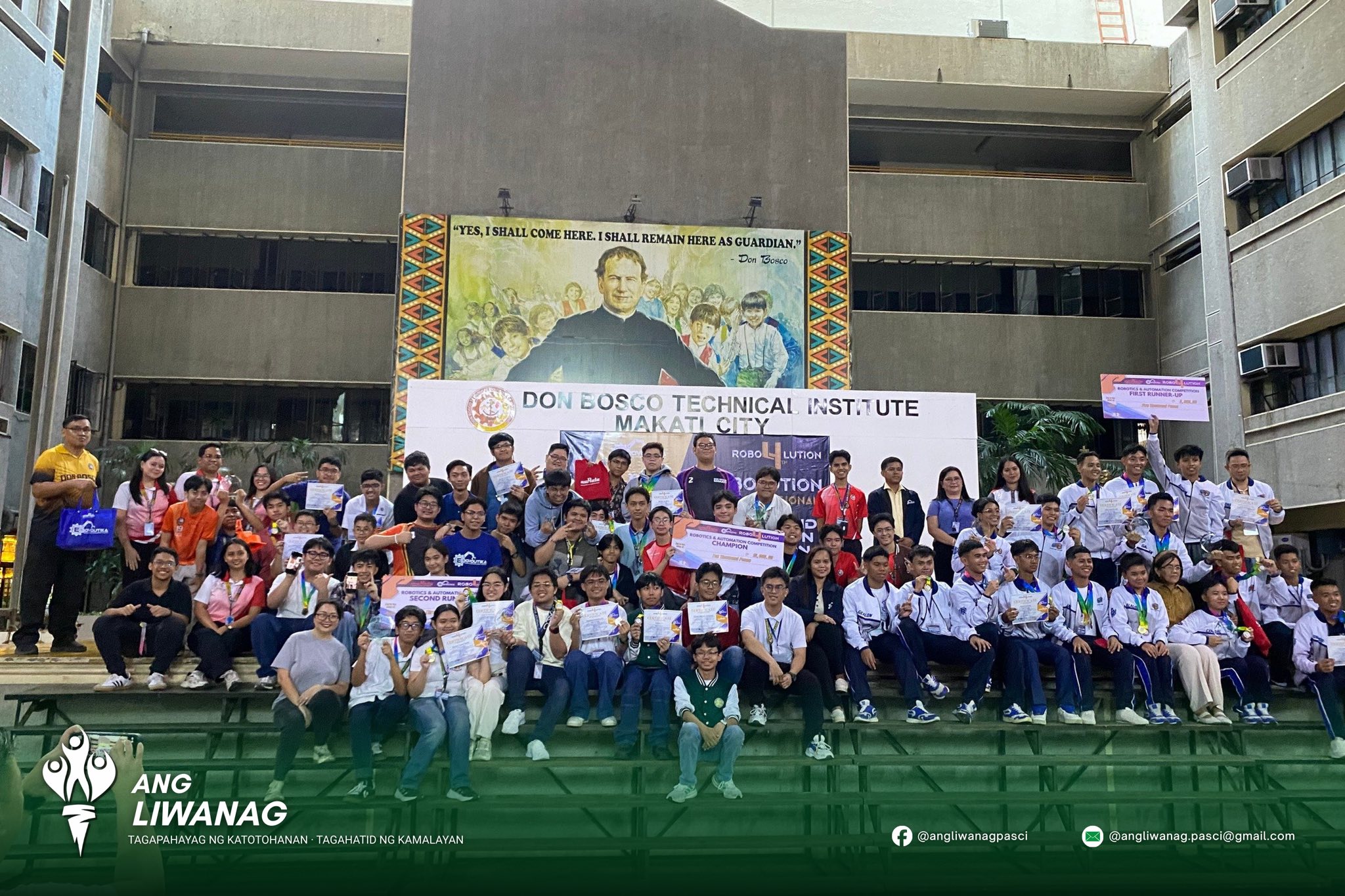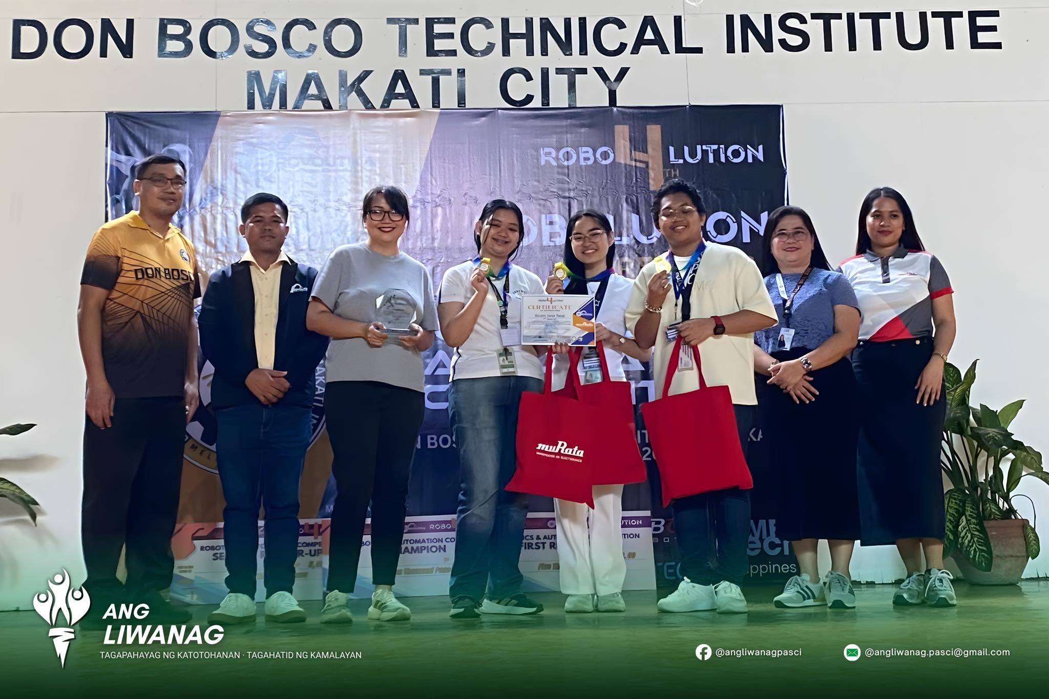 Isinulat ng Ang Liwanag TINGNAN: Nakamit nina Neil Josh Icaro, Gabrielle Kim Veridiano, at Pauline Marie Sy ang Unang Puwesto sa 4th Robolution Regional Robotics and and Automation – Quiz Bee Competition sa pagsasanay ni Gng. Lejanie Baya, ngayong ika-22 ng Nobyembre sa Don Bosco Technical Institute – Makati City.