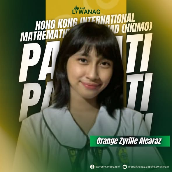 | Alaiza Eunice S. Cruz| Grizylle Lucinario “Sobrang nakaka-fulfill ‘yung feeling lalo na’t unang gintong medalya ko rin ito mula sa mga internasyonal na kompetisyon at nakatutuwang dala ko ang pangalan ng paaralan kasama ang motto ng school na ‘aim for excellence’.” Ito na lamang ang diin ni Filha Bautista, isang mag-aaral sa Pasay City National Science High School (PCNSciHS), matapos ang pagtamo ng gintong medalya sa Huling yugto ng Hong Kong International Mathematical Olympiad (HKIMO) sa Senior Secondary Category na ginanap sa Zoom meeting nitong ika-23 ng Agosto taong 2025. Kasama ni Bautista ay nakuha rin ni Orange Alcaraz ng PCNSciHS ang ginto sa Secondary Category. Giit ni Alcaraz ang kagandahan ng kanyang naging karanasan sa kompetisyon dahil sa hatid nitong bagong kaalamang mas nagpatibay ng kanyang interes sa Matematika. “Para sa mga kabataang may pangarap sa larangang ito, ipagpatuloy lamang ang pagsusumikap, huwag panghinaan ng loob sa mga mahihirap na problema, at laging maniwala sa sariling kakayahan,” mensahe niya sa isang online interview. Lumahok din ang ilang bansa gaya ng Hong Kong, Thailand, India, at iba pa sa HKIMO ng Math Olympiads Training League Inc. (MOTLI). “Mathematics contest siya where in may heat round and final round. Need makakuha ng placing medals sa heat round para makaabot sa finals. Isa ang HKIMO sa mga contests na hawak ng MOTLI na ang focus ay mapagsama-sama ang mga batang interesado at magaling sa asignatura para magkaroon ng space para maka-thrive sila,” ani Bautista tungkol sa naturang paligsahan. Ayon sa kanya, hindi lamang ito isang paligsahan kundi isang pagkakataon para mahubog ang kakayahan ng kabataan at mabuo ang komunidad ng mga mag-aaral na may hilig at galing sa matematika. “Para sa mga math enthusiast, isang testigo ang paglalakbay kong ito na hindi natin agad-agad makukuha ang pinakamataas na gantimpala pero kaya nating sumubok nang paulit-ulit at tatandaang ang pinakaimportante sa lahat ay may nakukuha kang experience sa mga bagay na gusto mong ginagawa. Padayon,” diin niya para sa mga estudyanteng hilig ang matematika bilang asignatura.