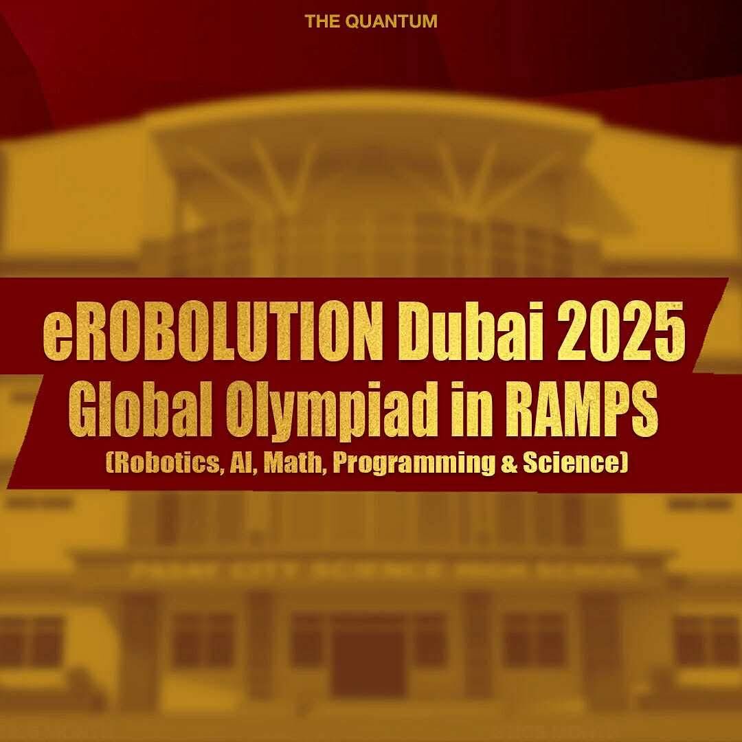 via Nikita Pariña | The Quantum Pasay City National Science High School has once again proven the brilliance of Filipino youth, clinching multiple awards at the eROBOLUTION Dubai 2025: Global Olympiad in RAMPS — a competition in Robotics, AI, Math, Programming, and science — November 8. The awardees are as follows: BIOLOGY – Category 4 • Alzen Loyd B. Cruz – 1st Place • Willard James H. Alfonso – 2nd Place MATHEMATICS – Category 4 • Orange Zyrille G. Alcaraz – 2nd Place CHEMISTRY – Category 4 • Alzen Loyd B. Cruz – 2nd Place ROBOSIM – Junior High School • Eisen Weins Vicente – 3rd Place CHEMISTRY – Category 3 • Christian Dave Tabada – 2nd Place BIOLOGY – Category 3 • Christian Dave Tabada – 2nd Place The students were trained by Ms. Aizah Agub, the club adviser of IRYS.