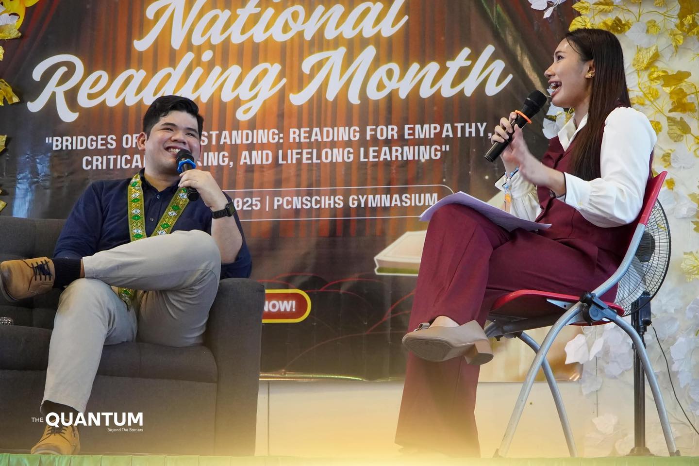 via Emmanuel Salazar | The Quantum To honor National Reading Month, Pasay City National Science High School (PCNSciHS) and the official English Club, Le Compendium, held the opening program at the school gymnasium on November 7, 2025. The day started with the Eucharistic Mass around 7 a.m., followed by the cosplay parade at around 9 a.m., where students of all grade levels showed off their attire following their respective themes. The program proper started at around 9:40 a.m. with the preliminary activities led by the PCNSciHS Chorale, followed by the opening speeches of Dr. Mark Anthony Familaran, School Principal II, and Mrs. Sara Jane Delos Santos, Assistant Principal II, represented by Mrs. Pinky Esguerra, School administrator, and Mrs. Arlyn Esber, Head Teacher, respectively. An energizer was conducted by Galaw Siyensa, followed by the introduction of activities led by Mrs. Jackyline Lagaña, Head Teacher III and Faculty and Employees Association (FEA) President, and by Mrs. Anabelle Cusi, Master Teacher II, who introduced the reading ambassador, Mr. Gustav Sanchez, PCNSciHS Alumnus. Following Mr. Sanchez’s speech, a sit-down interview with Elyzza Esteban and Mr. Sanchez took place. Concluding the event, Mr. Mark Reniel Balolo, Le Compendium Adviser, announced the “Best Cosplay” winners with Tristan Bautista in fifth, Roneza Bernasor in fourth, Yohan Navarro placing third, Elly Leduna securing second, and Orange Alcaraz achieving top spot. Ms. Remmy Parcia, Le Compendium President, stated that, “We aim to share the power of English literature, speech, and performing arts by providing students the opportunity their knowledge in these aspects and inspire them to recognize, appreciate, and uphold the enduring significance of these art forms.” Photos by: Gabrielle Ayesha Nicolas, Dexter Ogale, Pearl Belena, Aliyah Lopez, Kylie Ronquillo, Reizhen Tualla, Santine Susa, Ryza Sophia Anabo, Leina Eavonne Miguel.
