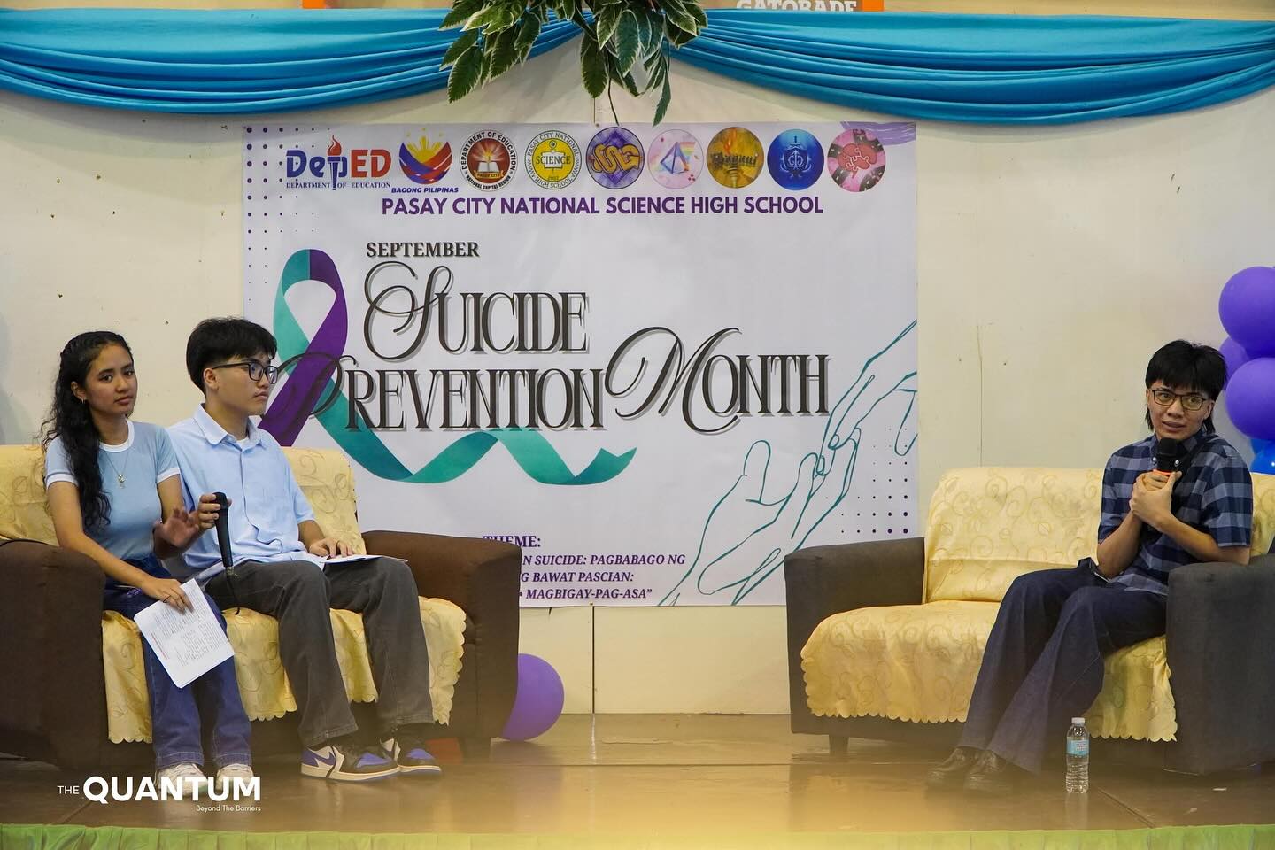 via Angelyka De Luna | The QuantumCopyedited by: Estella Talua Pasay City National Science High School recently concluded the Suicide Prevention Month with a heartfelt program, promoting the importance of reaching out last October 15, 2025 at the school’s gymnasium. Dr. Mark Anthony F. Familaran then gave his warm speech, emphasizing the importance of mental awareness. Alumni, Jonas David Celos, joined the Mental Health Advocates, Marco G. Mallorca and Ayesha Ehris A. Salazar, in “Breaking the Silence.” Discussing about the struggles that most students face. Afterwards, certificates were then given to the winners of their respective contests. The program then ended with a performance from the Grade 10 students. The Glee Club then led the community song, “With a smile” by Eraserheads. This program served as a reminder that reaching out does not mean being weak — especially when the struggles are too much. Moreover, reminding us that every voice is and must be heard in any way.