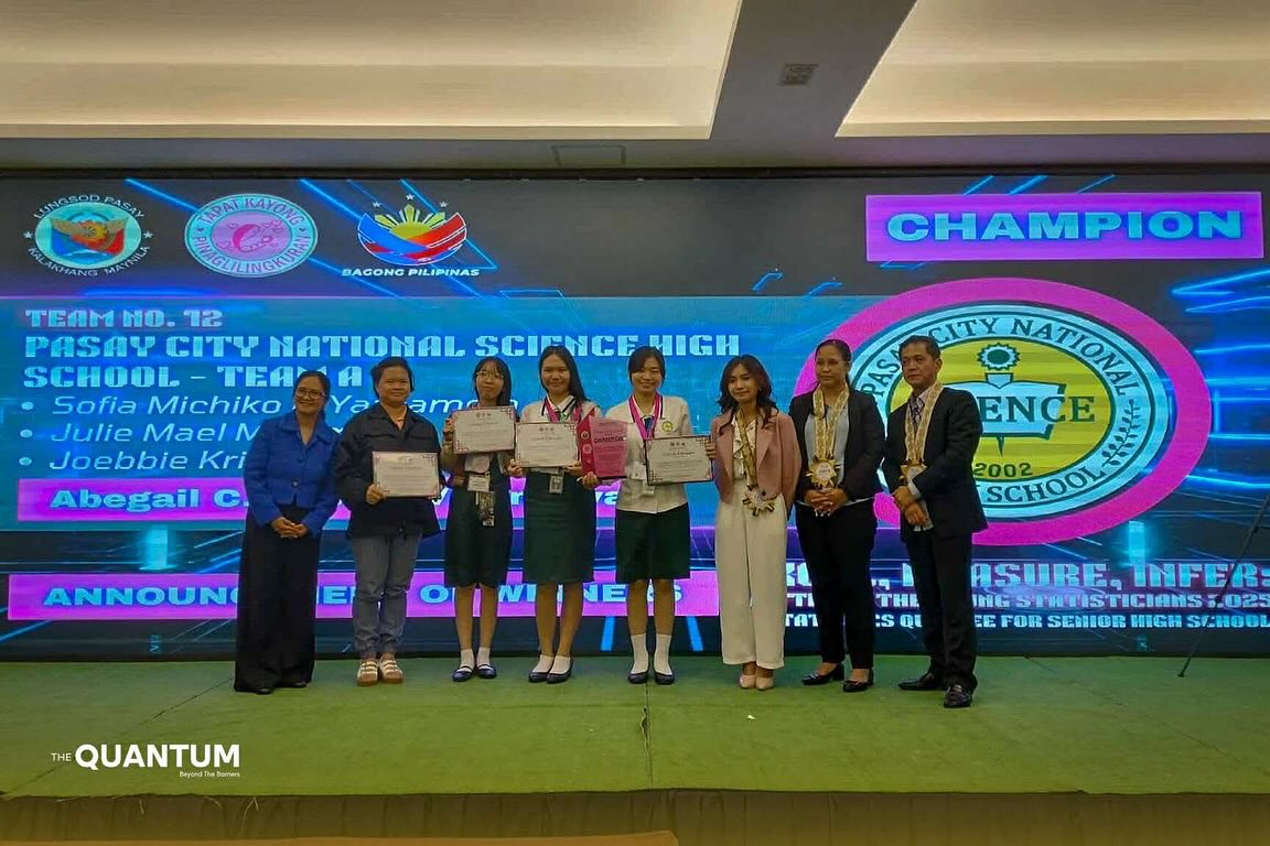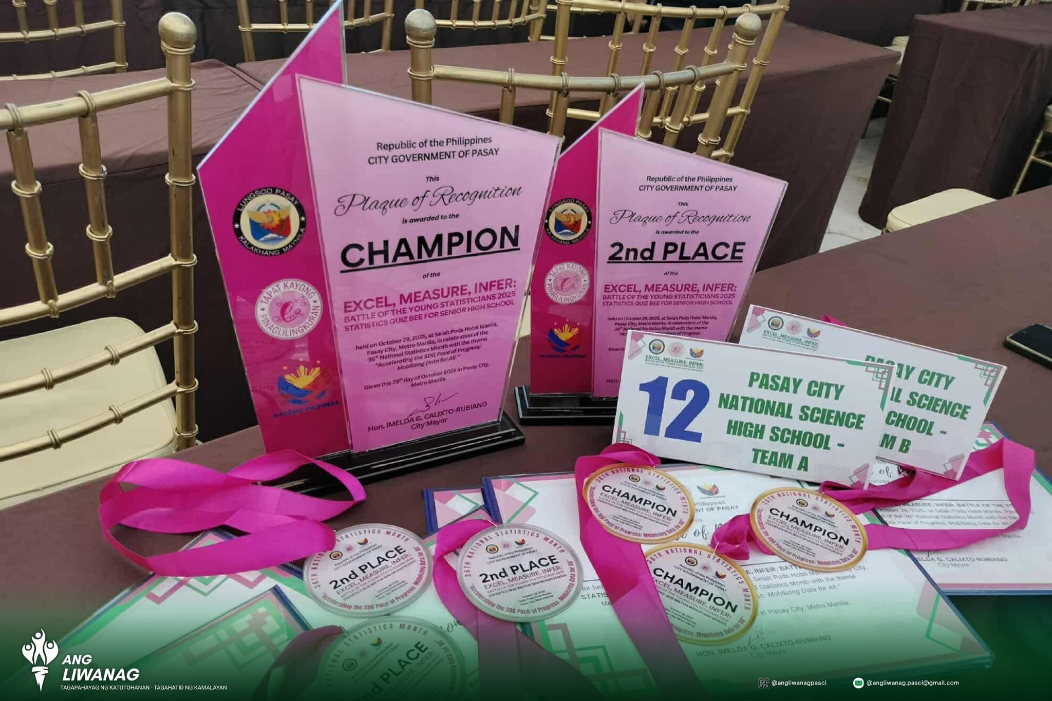 | Alaiza Eunice S. Cruz| Gng. Abegail Villanueva| Ayesha Salazar Nagpamalas ng kahusayan ang mga mag-aaral ng Pasay City National Science High School (PCNSciHS) sa Senior High School Statistics Quiz Bee na inorganisa ng City Planning and Development Office (CPDO) ng Pasay City na may temang “Excel, Measure, Infer: Battle of the Young Statisticians 2025” na ginanap sa Selah Pods Hotel Manila, Pasay City ngayong ika-29 ng Oktubre. Lumaban ang 25 paaralan mula sa lungsod kung saan 10 koponan ang nakapasok sa Semi-Final at Final Rounds matapos ang Elimination Round. Nakamit ng PCNSciHS Team A na binubuo nina Joebbie Krizel V. Gaugano, Julie Mael M. Dimla, at Sofia Michiko L. Yamamoto ang kampeonato na may kabuuang puntos na 76, habang sinundan ito ng PCNSciHS Team B na kinabibilangan nina Julie Anne H. Gatmin, Neil Josh D. Icaro, at Beia Loreez M. Rafanan na nagtala ng 71 puntos, sa pagsasanay ni Gng. Abegail Villanueva. Sumunod naman sa ikatlo hanggang ikalimang pwesto ang San Juan De Dios Educational Foundation, Inc. College, National University–Mall of Asia, at Manila Tytana Colleges. Ipinahayag ni Pasay City Mayor Emi Calixto-Rubiano sa isang post na layunin ng aktibidad na palalimin ang pag-unawa ng mga kabataang Pasayeño sa estadistika bilang isang mahalagang kasangkapan sa paggawa ng desisyon at pagpapaunlad ng lipunan. Ibinahagi naman ni Sofia Michiko Yamamoto na bagama’t hindi naging madali ang kompetisyon, naghatid ito ng mga panibagong kaalaman at karanasang kanilang babaunin sa hinaharap. Hinimok din niya ang mga kabataang nagnanais magtagumpay sa larangan ng estadistika na huwag sumuko sa hamon ng mga numero sapagkat ito ang magbubukas ng pinto tungo sa mas malalim na pag-unawa sa mundo. #YoungStatistician2025 #HusayNgPaSci