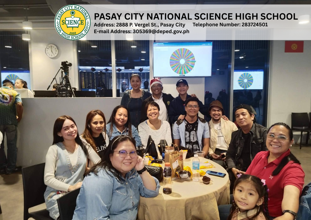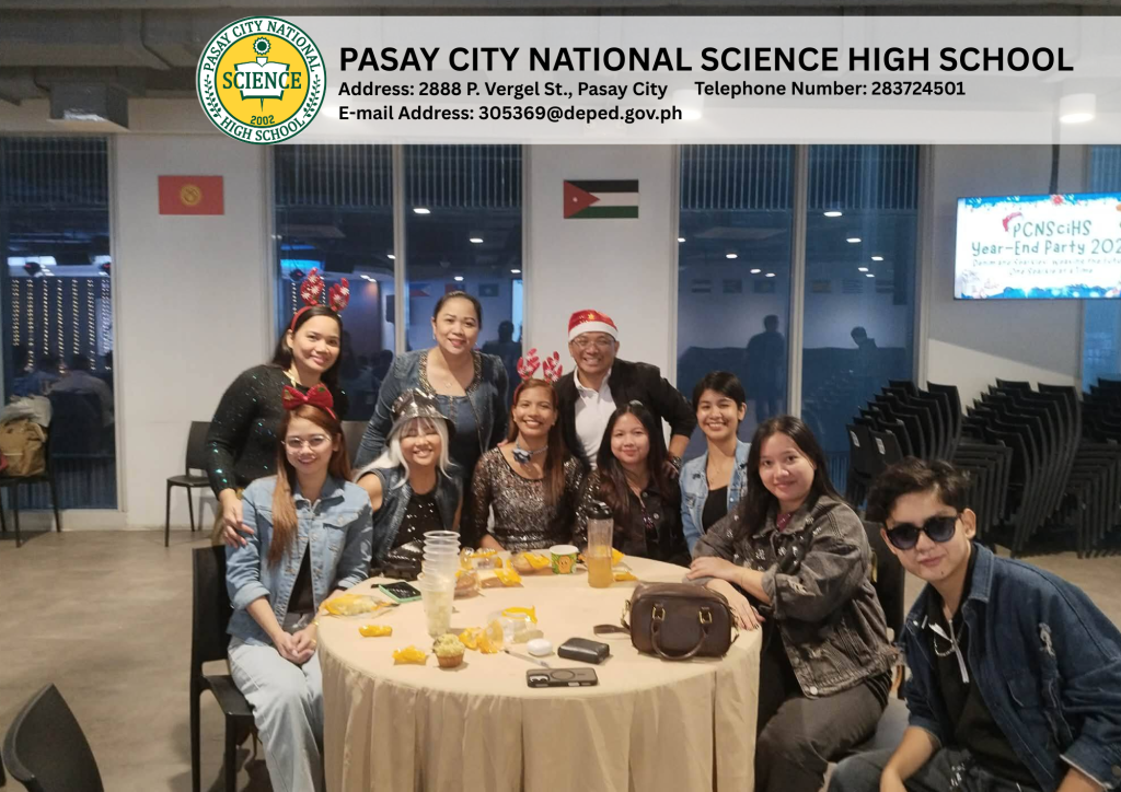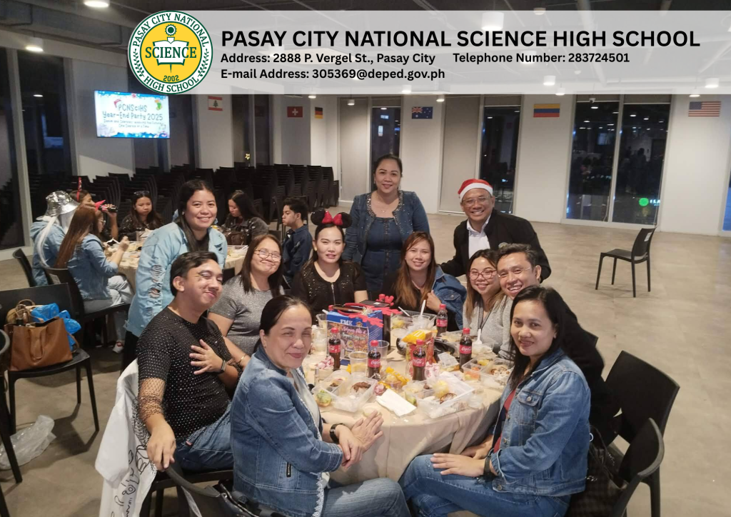 In celebration of this milestone, the faculty and staff members of the Pasay City National Science High School (PCNSciHS) observed the Year-End Party on December 19, 2025, at the Double Dragon Plaza Center West, 3rd floor from 2:00 PM to 7:00 PM.