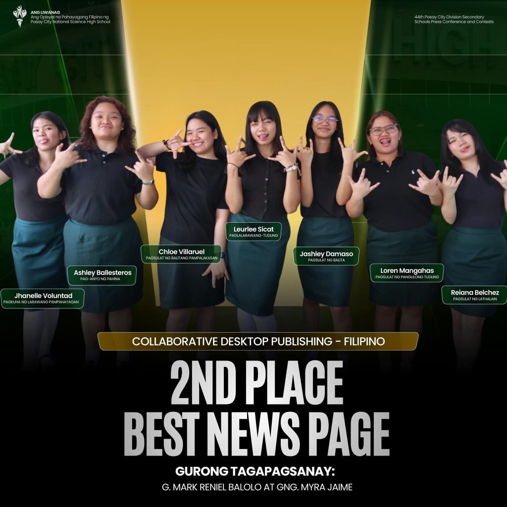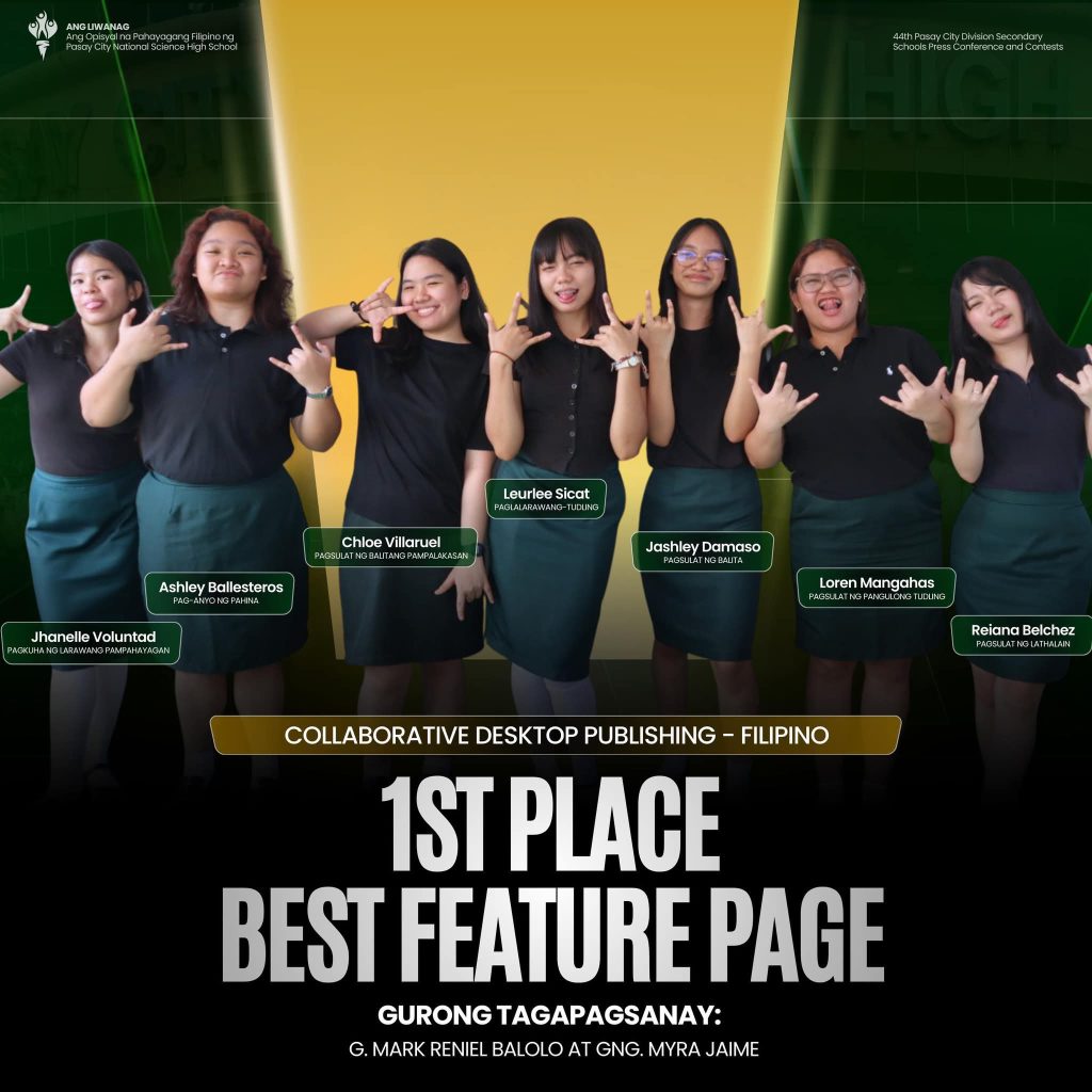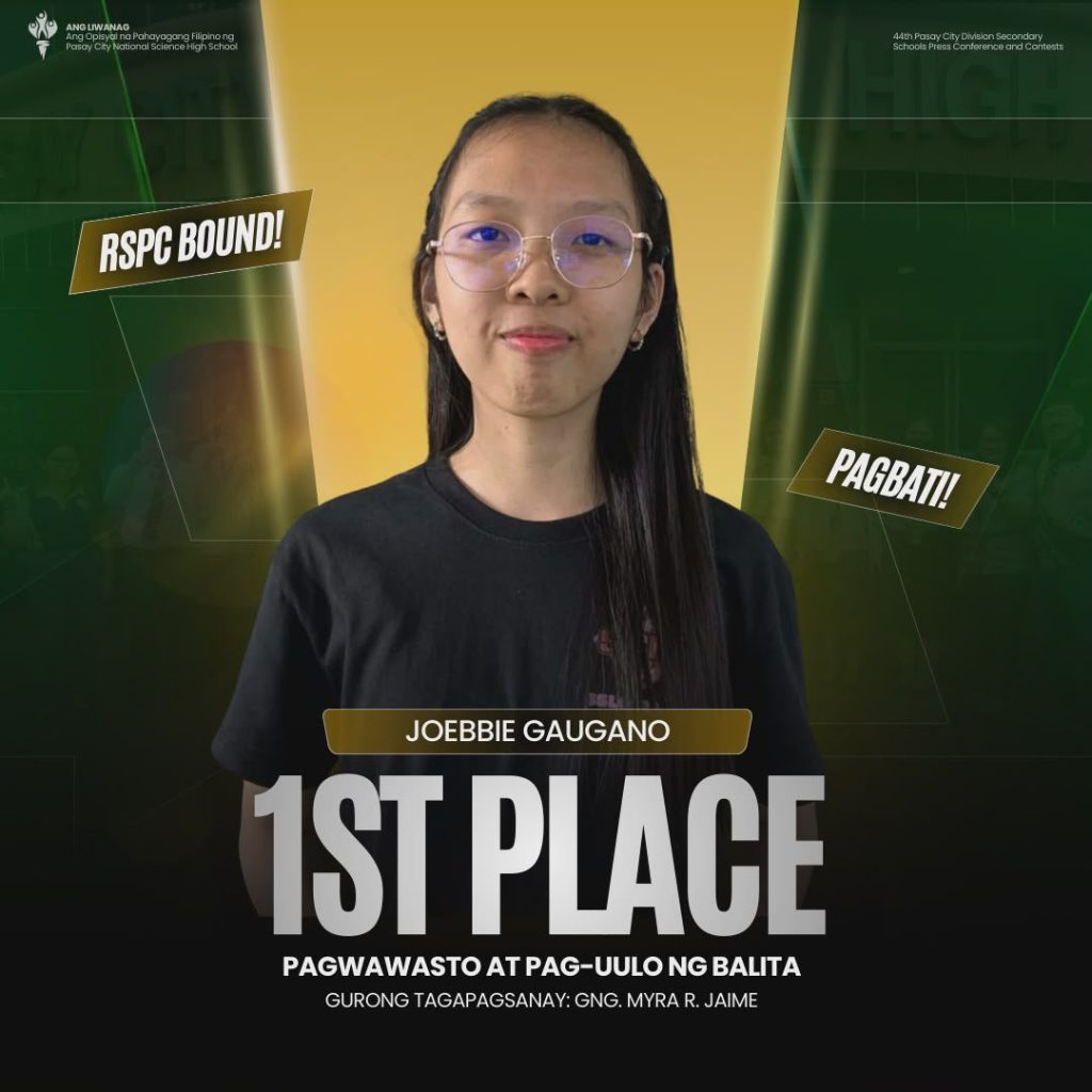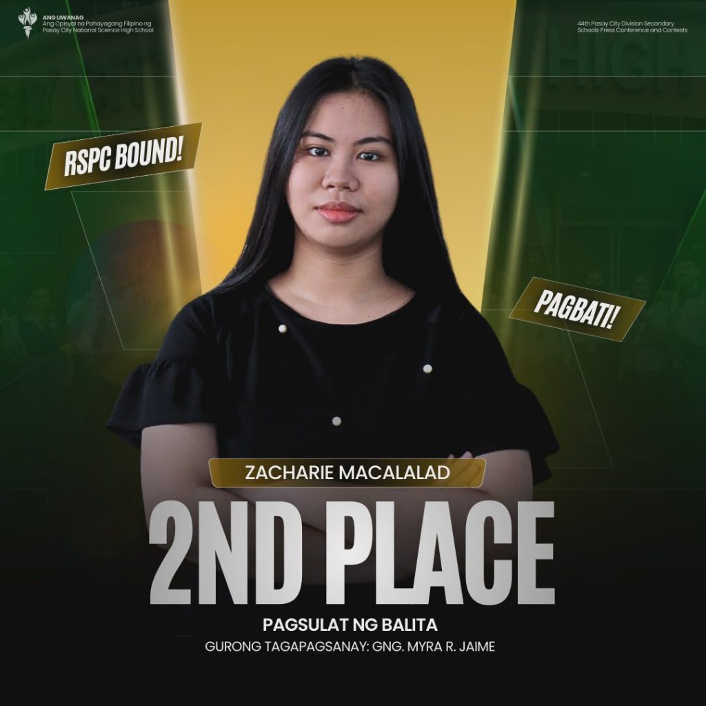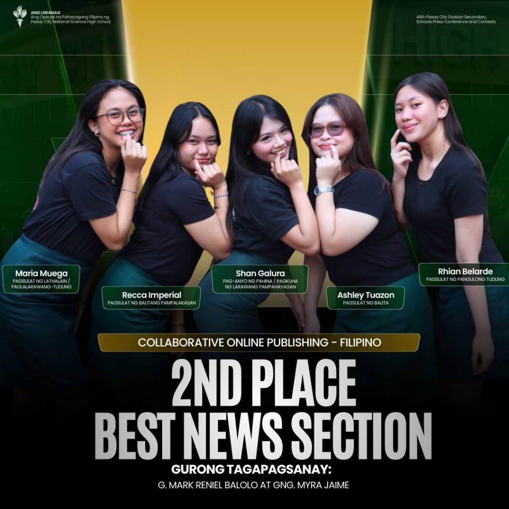Namayagpag ang Ang Liwanag sa 44th Pasay City Schools Press Conference and Contests, dala ang husay at dedikasyon ng kanilang mga estudyante sa pamamahayag. Muling pinakita ni Zacharie Macalalad ang galing niya nang makamit ang ikalawang puwesto sa Pagsulat ng Balita sa tulong ni Gng. Myra R. Jaime, habang si Carl Vincent Chua ang nagwagi ng unang puwesto sa Pagsulat ng Balitang Pampalakasan sa paggabay ni Gng. Ashlee M. Castillo.