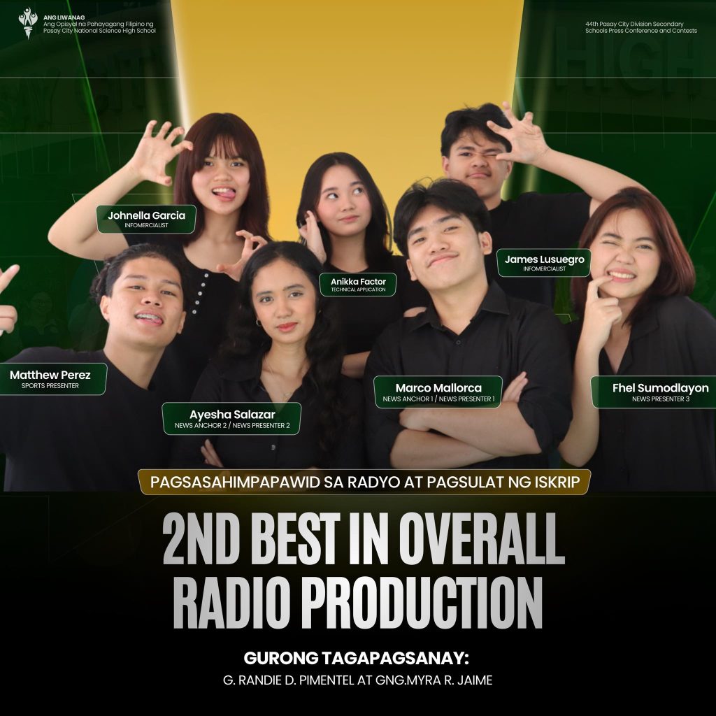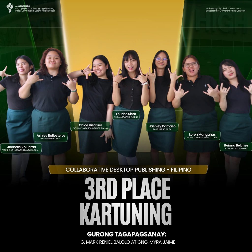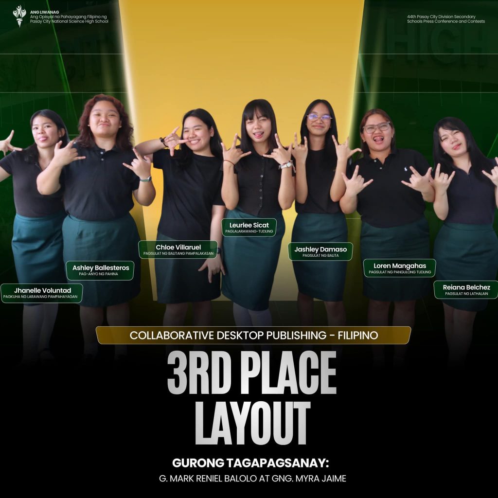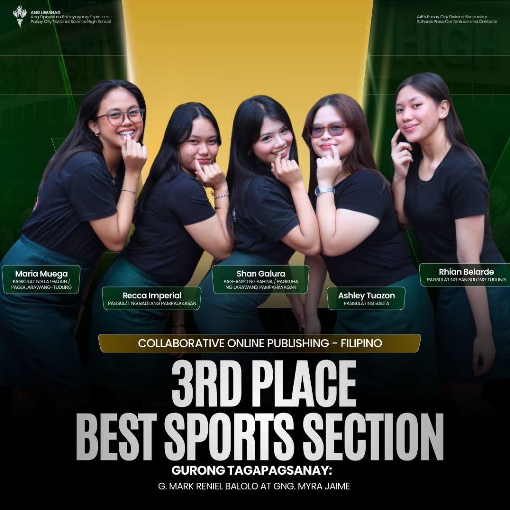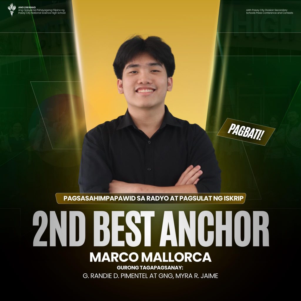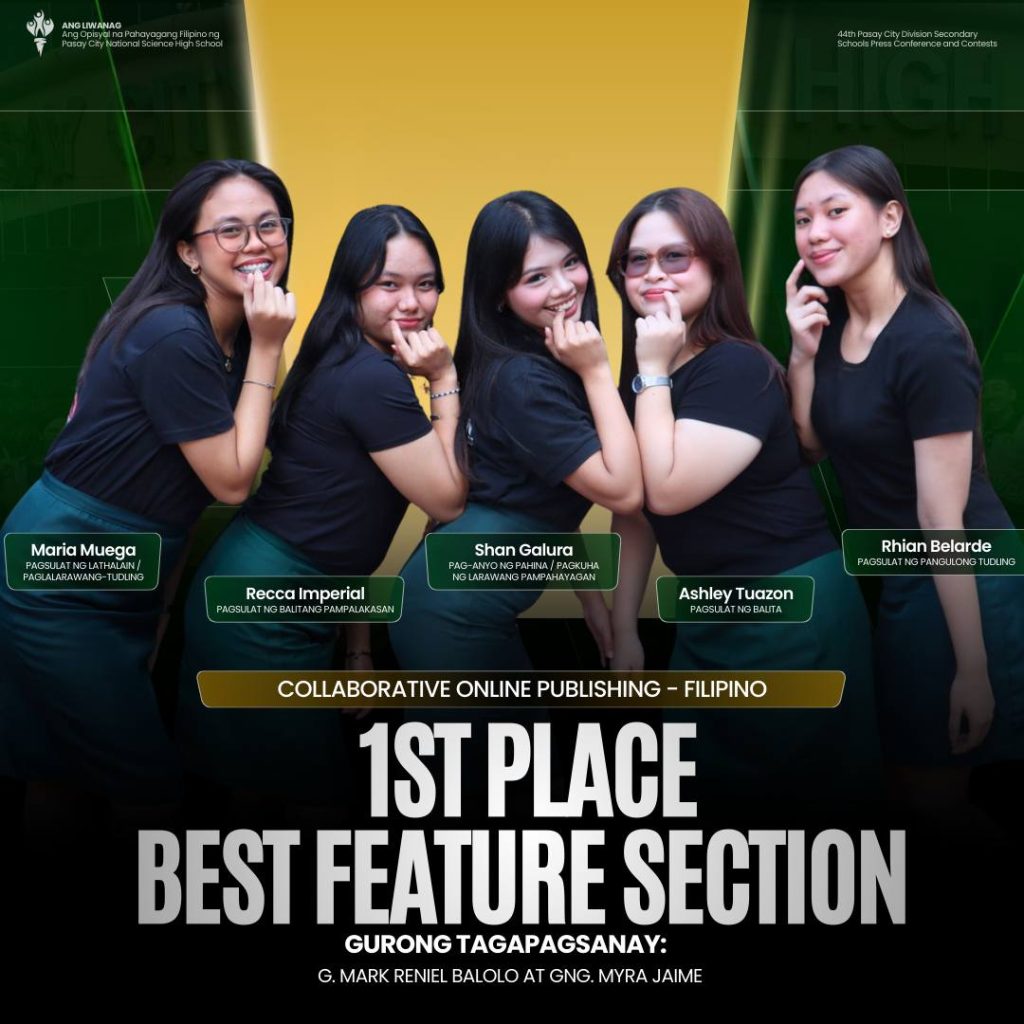 Namayagpag ang Ang Liwanag sa 44th Pasay City Schools Press Conference and Contests, dala ang husay at dedikasyon ng kanilang mga estudyante sa pamamahayag. Muling pinakita ni Zacharie Macalalad ang galing niya nang makamit ang ikalawang puwesto sa Pagsulat ng Balita sa tulong ni Gng. Myra R. Jaime, habang si Carl Vincent Chua ang nagwagi ng unang puwesto sa Pagsulat ng Balitang Pampalakasan sa paggabay ni Gng. Ashlee M. Castillo.