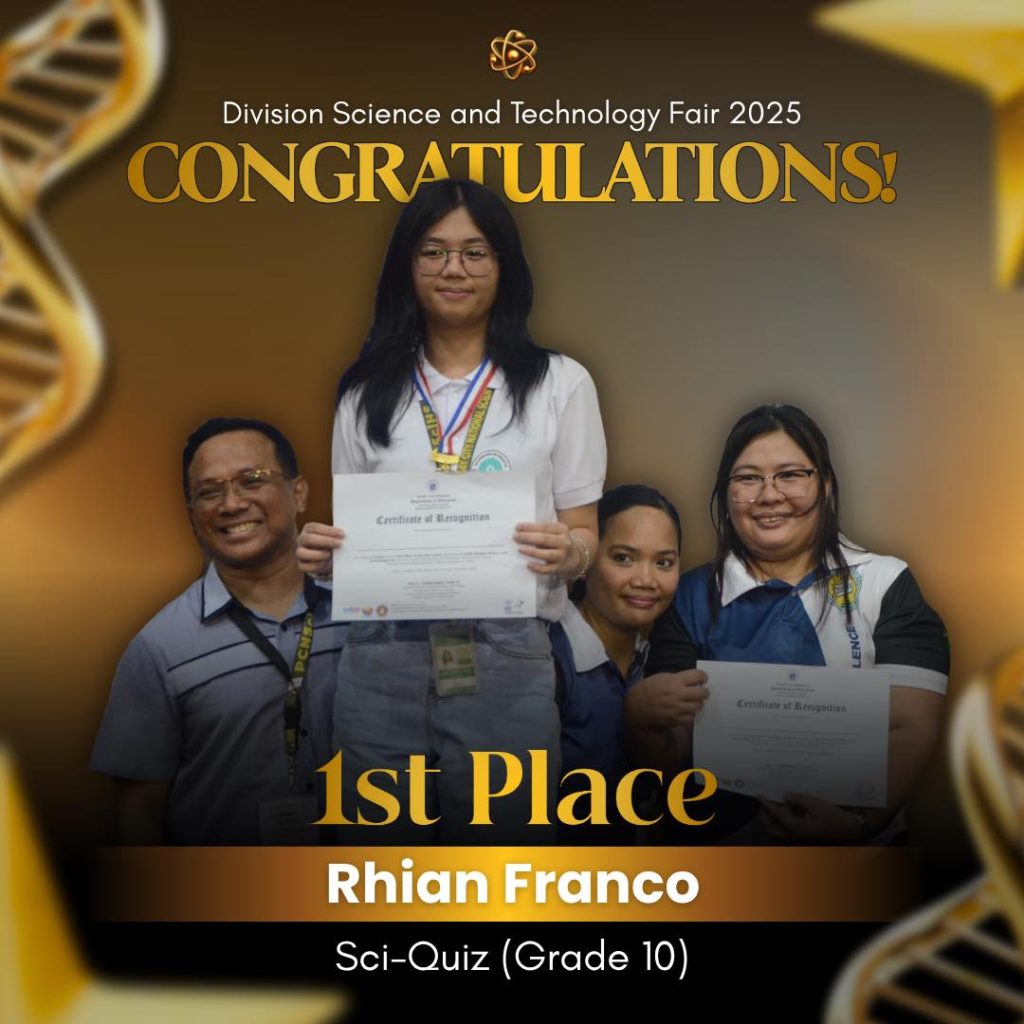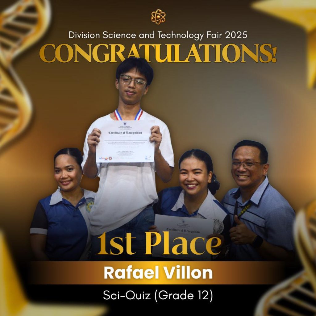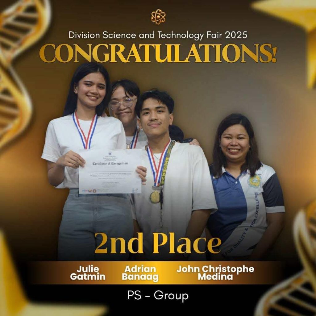 Garnering a total score of 109 points, Pasay City National Science High School once again dominated the 2025 Division Science and Technology Fair, clinching the overall win for the Top Performing Secondary School during the awarding ceremony held at Pasay City South High School.