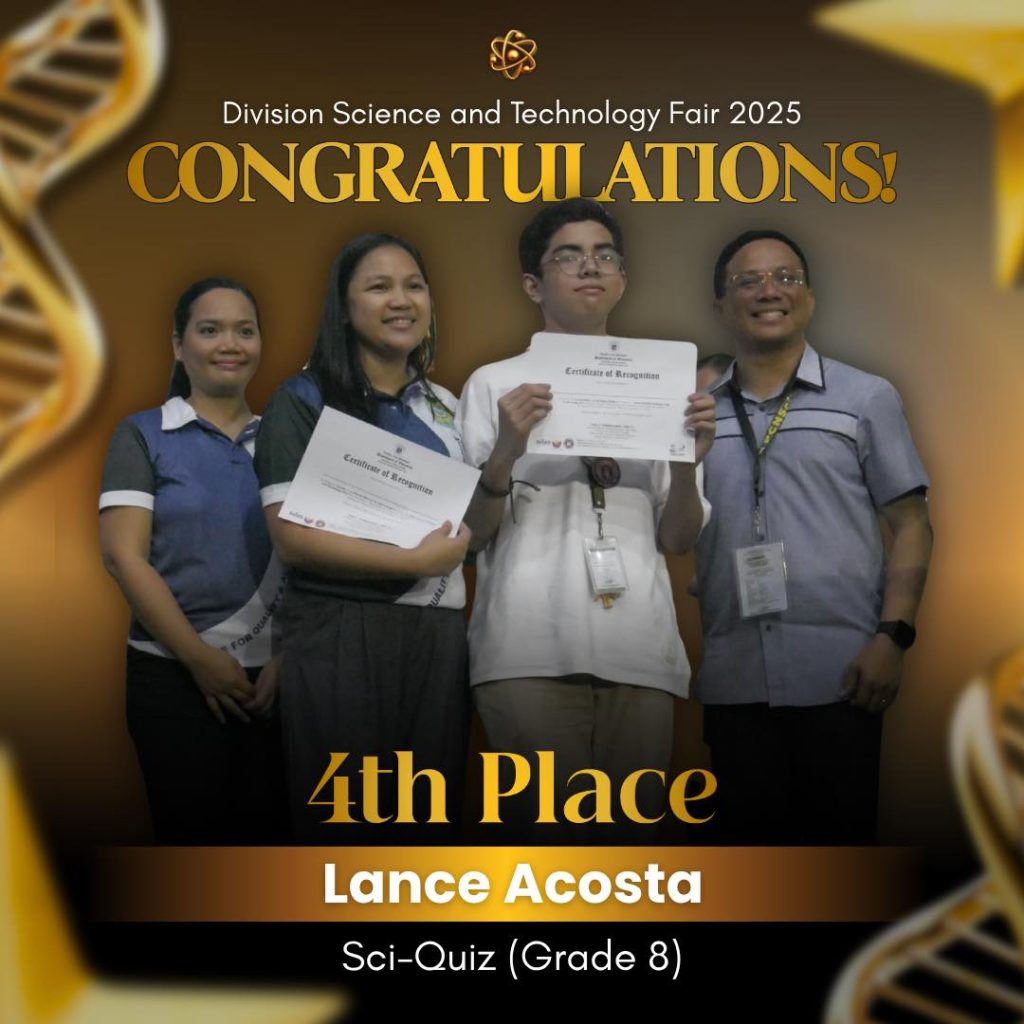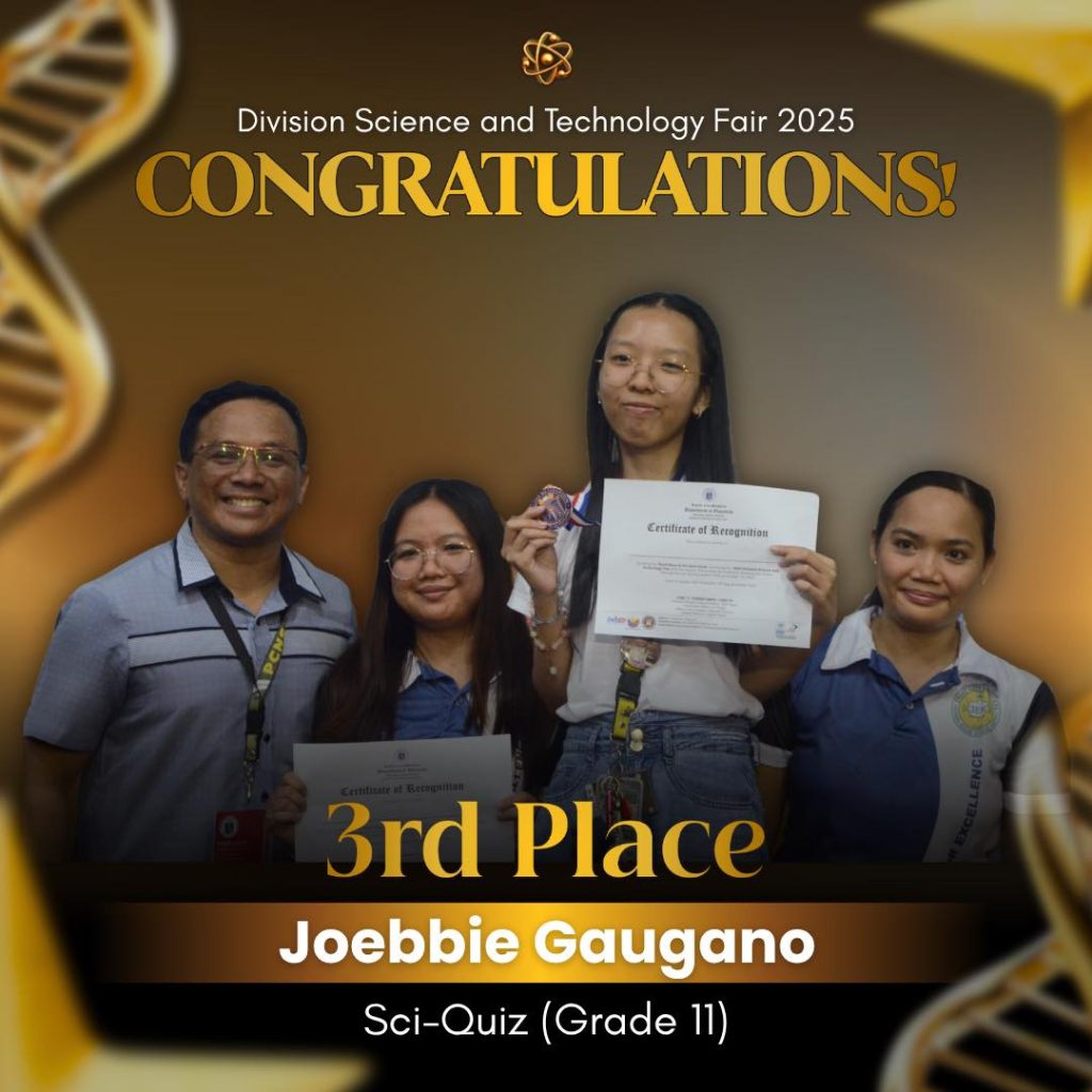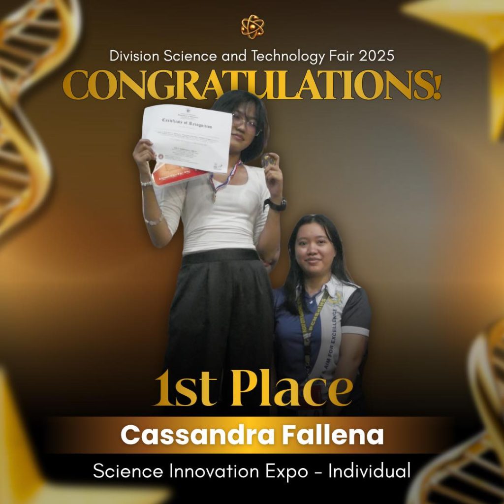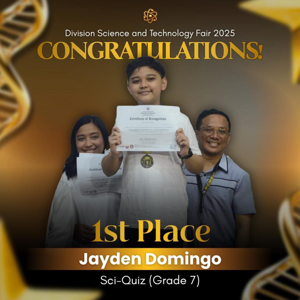 Garnering a total score of 109 points, Pasay City National Science High School once again dominated the 2025 Division Science and Technology Fair, clinching the overall win for the Top Performing Secondary School during the awarding ceremony held at Pasay City South High School.