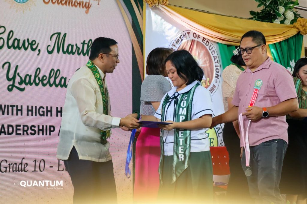 School Principal II Dr. Mark Anthony Familaran, together with Public Schools District Supervisor (PSDS) Dr. Renato Mesada, formally certified the completers. Distinguished students were also recognized for their academic excellence and active involvement in school activities.